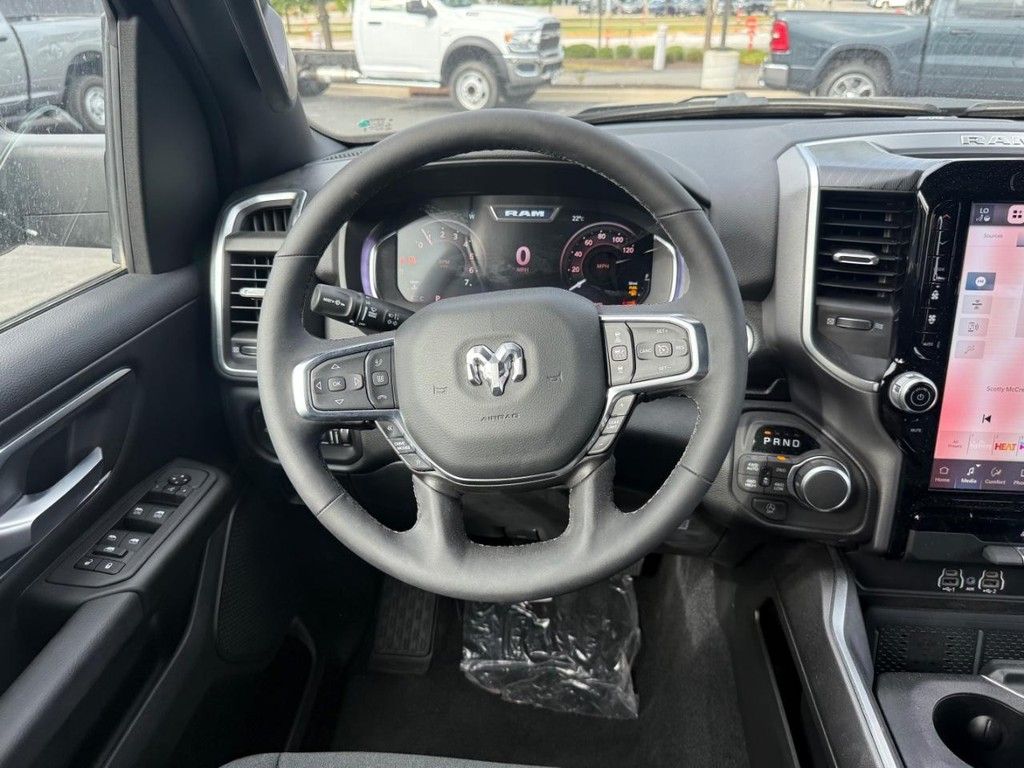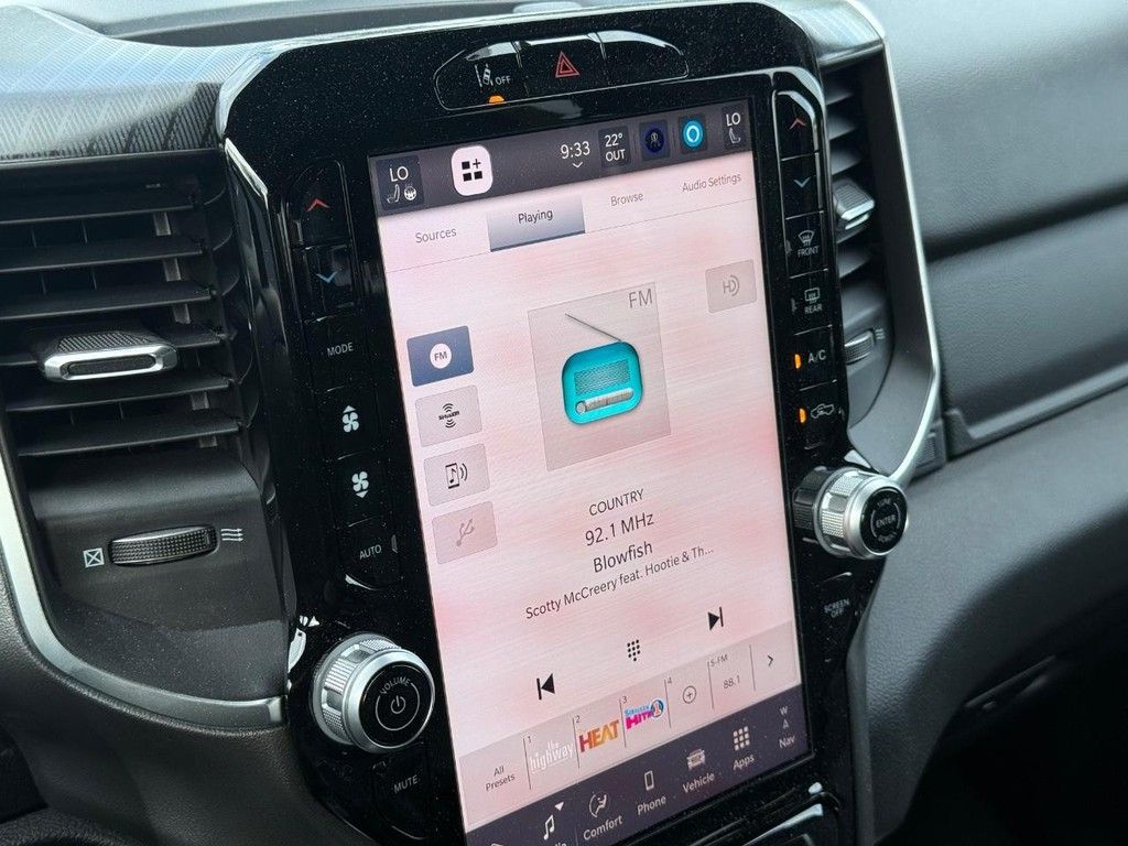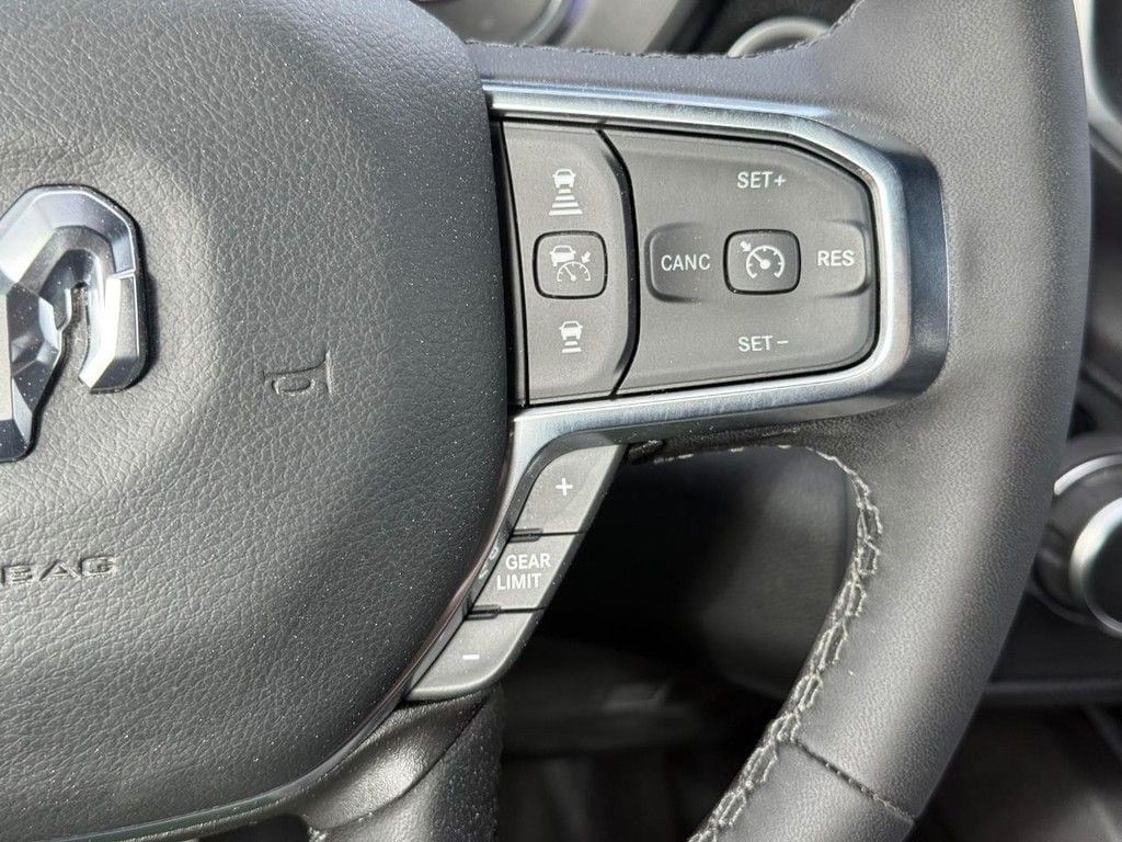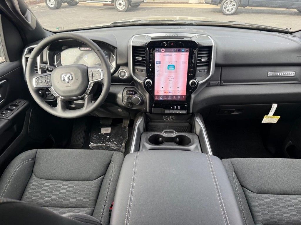115V Auxiliary Power Outlet, 115V Auxiliary Rear Power Outlet, 12" Touchscreen Display, 2nd Row In Floor Storage Bins, 400W Inverter, 4G LTE Wi-Fi Hot Spot, 9 Amplified Speakers w/Subwoofer, Accent Color Door Handles, Accent Color Premium Power Mirrors, Accent Color Tailgate Handle, Air Conditioning ATC w/Dual Zone Control, Anti-Spin Differential Rear Axle, Apple CarPlay, Apple CarPlay/Android Auto, Auto Power-Folding Mirrors, Auto-Dimming Exterior Driver Mirror, Auto-Dimming Rear-View Mirror, Big Horn Level 2 Equipment Group, Black Exterior Mirrors, Black Exterior Truck Badging, Black Headlamp Bezels, Black Interior Accents, Black Painted Exterior Mirrors Caps, Black Premium Power Mirrors, Black Tail Lamp Bezels, Body Color Front Bumper, Body Color Rear Bumper w/Step Pads, Cluster 7.0" TFT Color Display, Configurable Drive Mode, Connected Travel & Traffic Services, Connectivity - US/Canada, Convex Wide-Angle Exterior Mirror Insert, Deluxe Cloth Bucket Seats, Exterior Mirrors Courtesy Lamps, Exterior Mirrors w/Heating Element, Exterior Mirrors w/Supplemental Signals, Front Seat Back Map Pockets, Full Length Floor Console, Glove Box Lamp, Google Android Auto, GPS Antenna Input, GPS Navigation, Grille Black Surround Black Mesh, HD Radio, Heated Front Seats, Heated Steering Wheel, Integrated Voice Command w/Bluetooth, Leather Wrapped Steering Wheel, LED Dome Lamp w/On/Off Switch, LED Footwell Lighting, Media Hub w/2 Charge Only USBs, Night Edition, Overhead LED Lamps, Power 2-Way Driver Lumbar Adjust, Power Adjust 8-Way Driver Seat, Power Adjustable Pedals, Premium Overhead Console, Quick Order Package 21Z Big Horn, Radio: Uconnect 5 Nav w/12.0" Display, RAM Grille Badge - Black, Rear 60/40 Folding Seat, Rear Center Armrest, Rear Power Sliding Window, Rear Window Defroster, Remote Tailgate Release, Security Alarm, SiriusXM w/360L, Steering Wheel Mounted Audio Controls, Sun Visors w/Illuminated Vanity Mirrors, Universal Garage Door Opener, USB Host Flip, Wheels: 20" x 9.0" Aluminum Painted Clad.