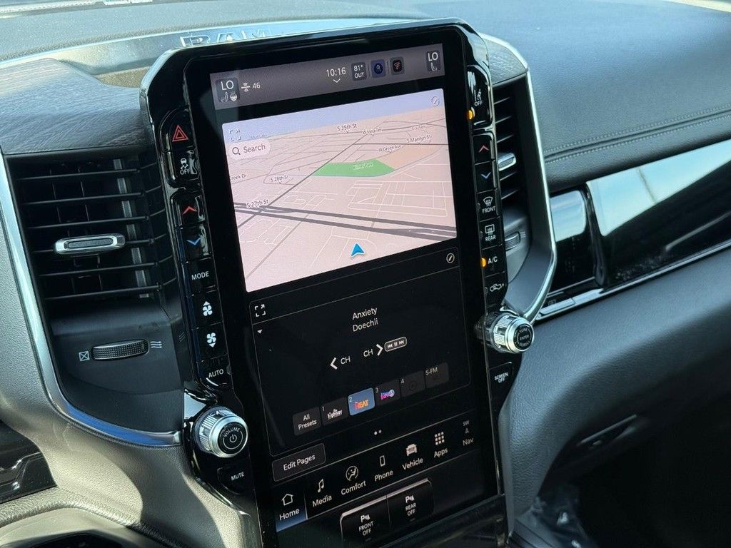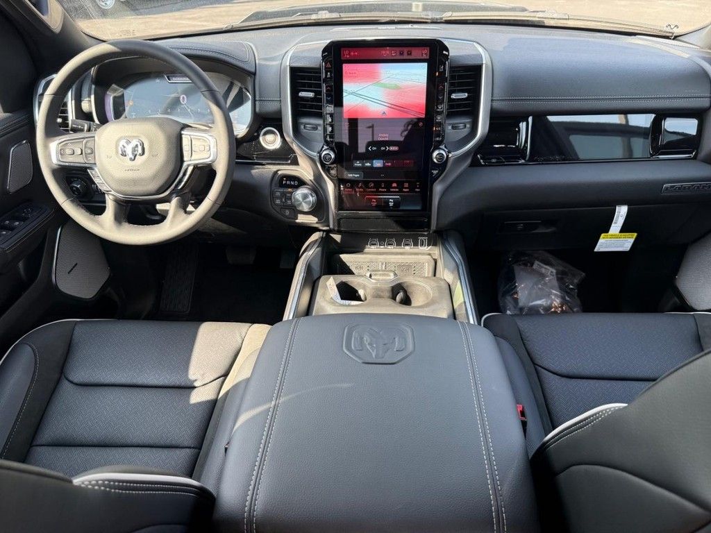 14.4" Touchscreen Display, 4G LTE Wi-Fi Hot Spot, Accent Color Door Handles, Accent Color Premium Power Mirrors, Accent Color Tailgate Handle, Anti-Spin Differential Rear Axle, Apple CarPlay, Apple CarPlay/Android Auto, Auto Power-Folding Mirrors, Auto-Dimming Exterior Driver Mirror, Automatic temperature control, Black Exterior Truck Badging, Black Headlamp Bezels, Black Interior Accents, Black Painted Exterior Mirrors Caps, Black Tail Lamp Bezels, Body Color Front Bumper, Body Color Rear Bumper w/Step Pads, Cluster 12" TFT Color Display, Connected Travel & Traffic Services, Connectivity - US/Canada, Convex Wide-Angle Exterior Mirror Insert, Disassociated Touchscreen Display, Dual Exhaust w/Black Tips, Dual Wireless Charging Pad, Exterior Mirrors Approach Lamps, Exterior Mirrors Courtesy Lamps, Exterior Mirrors w/Heating Element, Exterior Mirrors w/Memory, Exterior Mirrors w/Supplemental Signals, Front Passenger Interactive Display, Global Telematics Box Module (TBM), Google Android Auto, GPS Antenna Input, GPS Navigation, Grille Surround 3 Black Texture 2 Black, harman/kardon 19 Speaker Premium Sound, HD Radio, Heated front seats, Heated rear seats, Heated steering wheel, Integrated Center Stack Radio, Integrated Voice Command w/Bluetooth, Laramie Level 2 Equipment Group, Leather Trimmed Bucket Seats, Navigation System, Night Edition, ParkView Rear Back-Up Camera, Pirelli Brand Tires, Power Tailgate, Proximity Approach/Departure Lamps, Quick Order Package 21H Laramie, Radio: Uconnect 5 Nav w/14.4" Display, Rain Sensitive Windshield Wipers, RAM Grille Badge - Black, Secondary Active Grille Shutters, SiriusXM Radio Service, SiriusXM w/360L, Smartphone As A Key Capable, Sport Performance Hood, USB Host Flip, Ventilated front seats, Wheels: 22" x 9" Forged Aluminum.